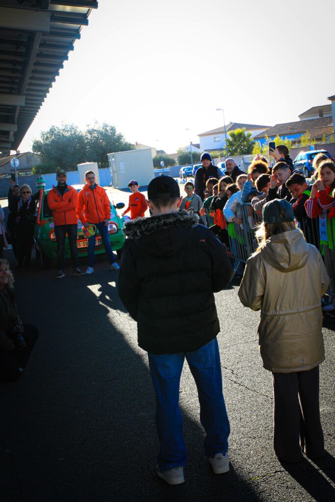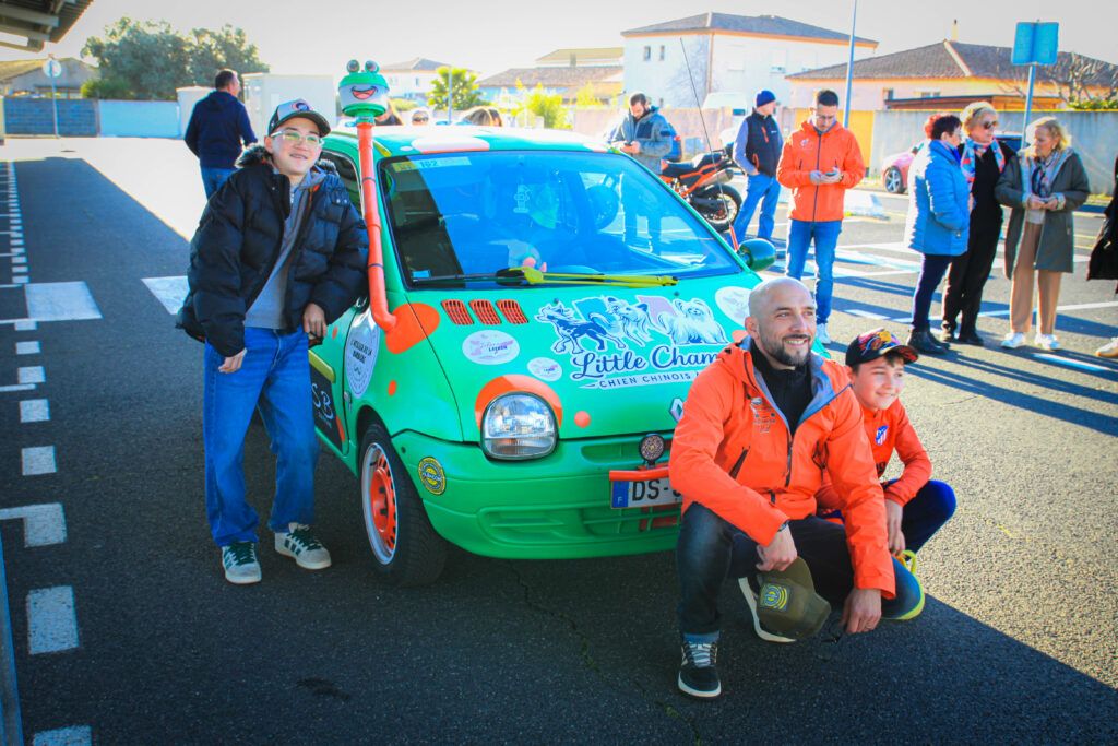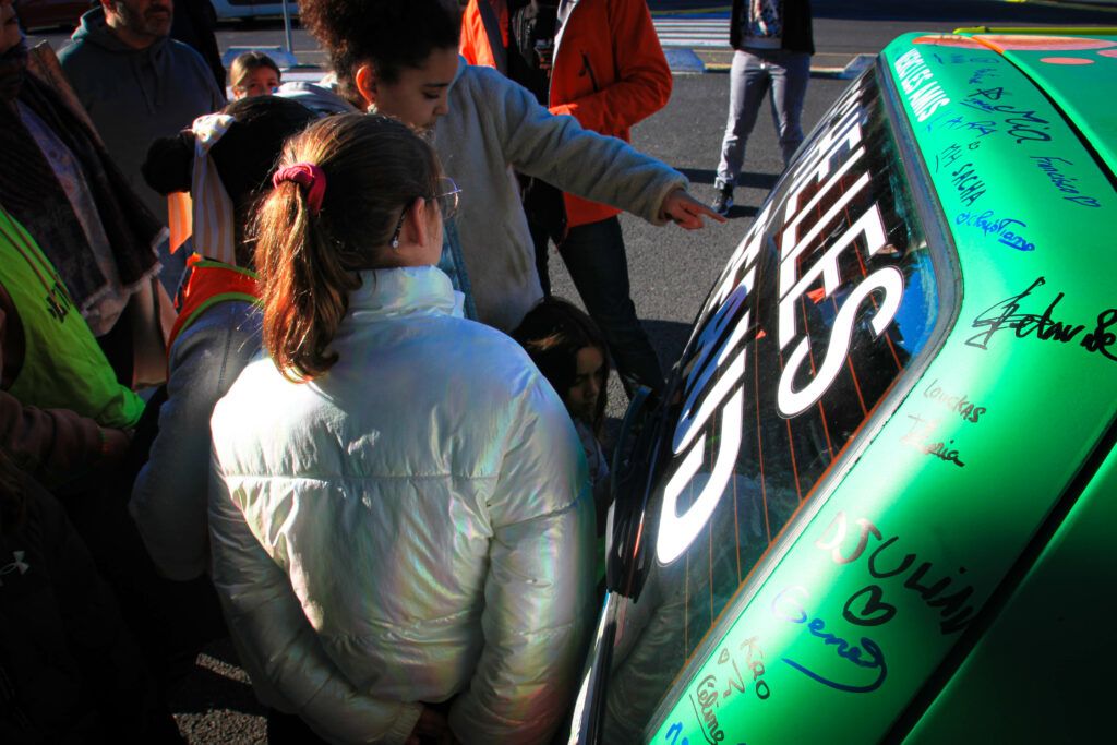 Les personnes prĂ©sentes ont Ă©galement pu inscrire leur prĂ©nom sur la voiture, laissant ainsi une trace symbolique de leur soutien qui accompagnera lâĂ©quipage tout au long du raid.
