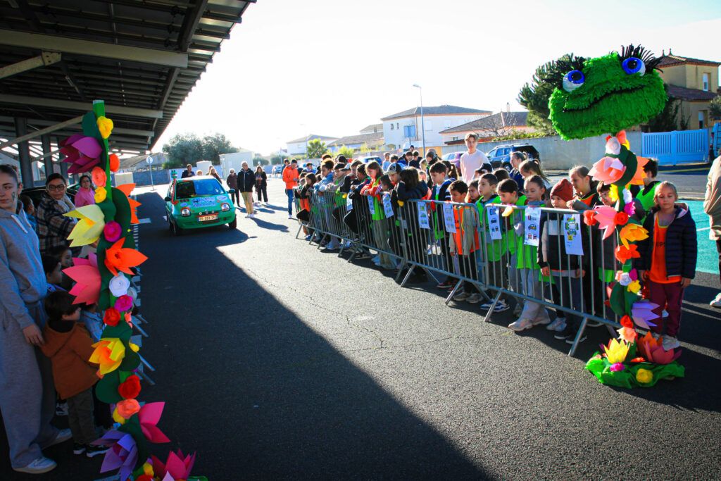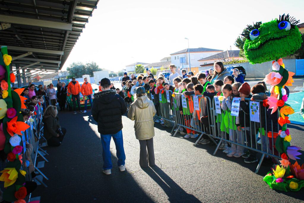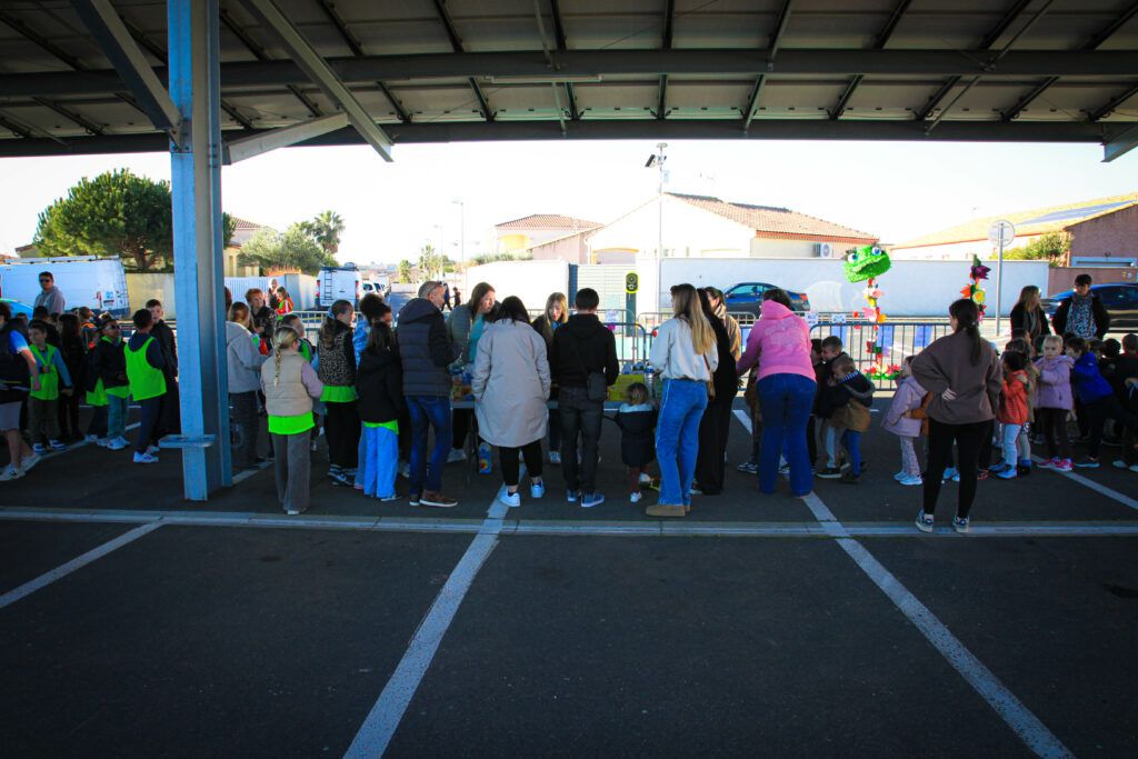 Le rendez-vous Ă©tait donnĂ© sur le parking de lâĂ©cole. Les enfants prĂ©sents au centre aĂ©rĂ© se sont prĂȘtĂ©s au jeu pour venir saluer nos deux Sauviannais pour ce dĂ©part.