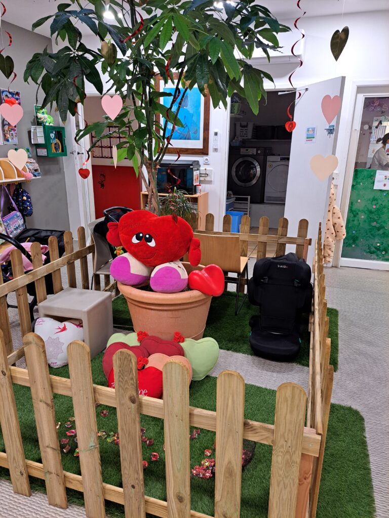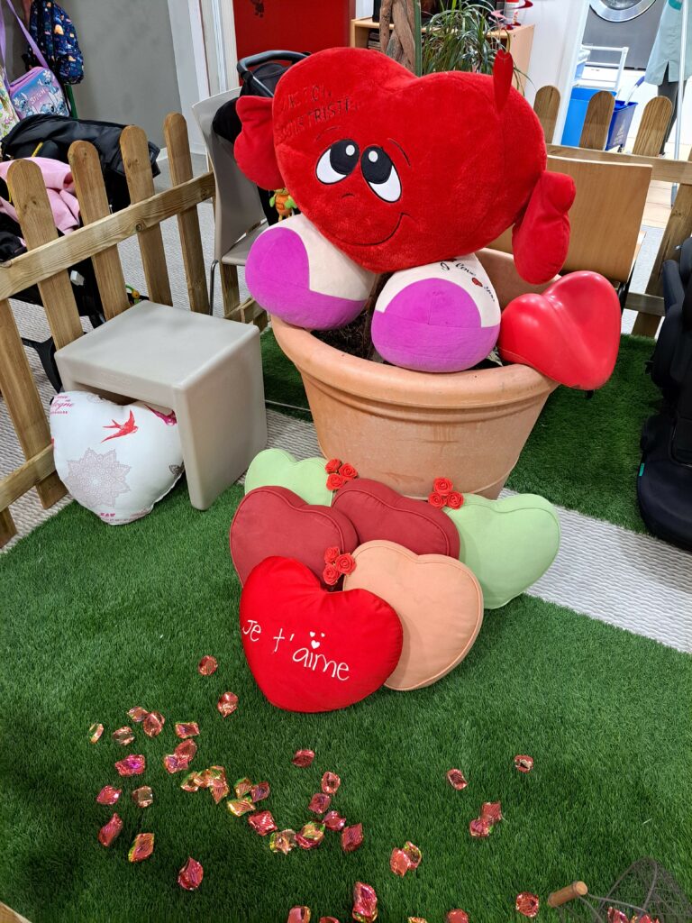 Pour l’occasion, notre crèche s’est parée de jolies décorations sur le thème de la “Fête de l’Amour”. Cœurs, couleurs douces et sourires sont au rendez-vous