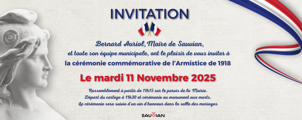 Bernard Auriol, Maire de Sauvian, et toute l’équipe municipale ont le plaisir de vous inviter à la cérémonie commémorative :
