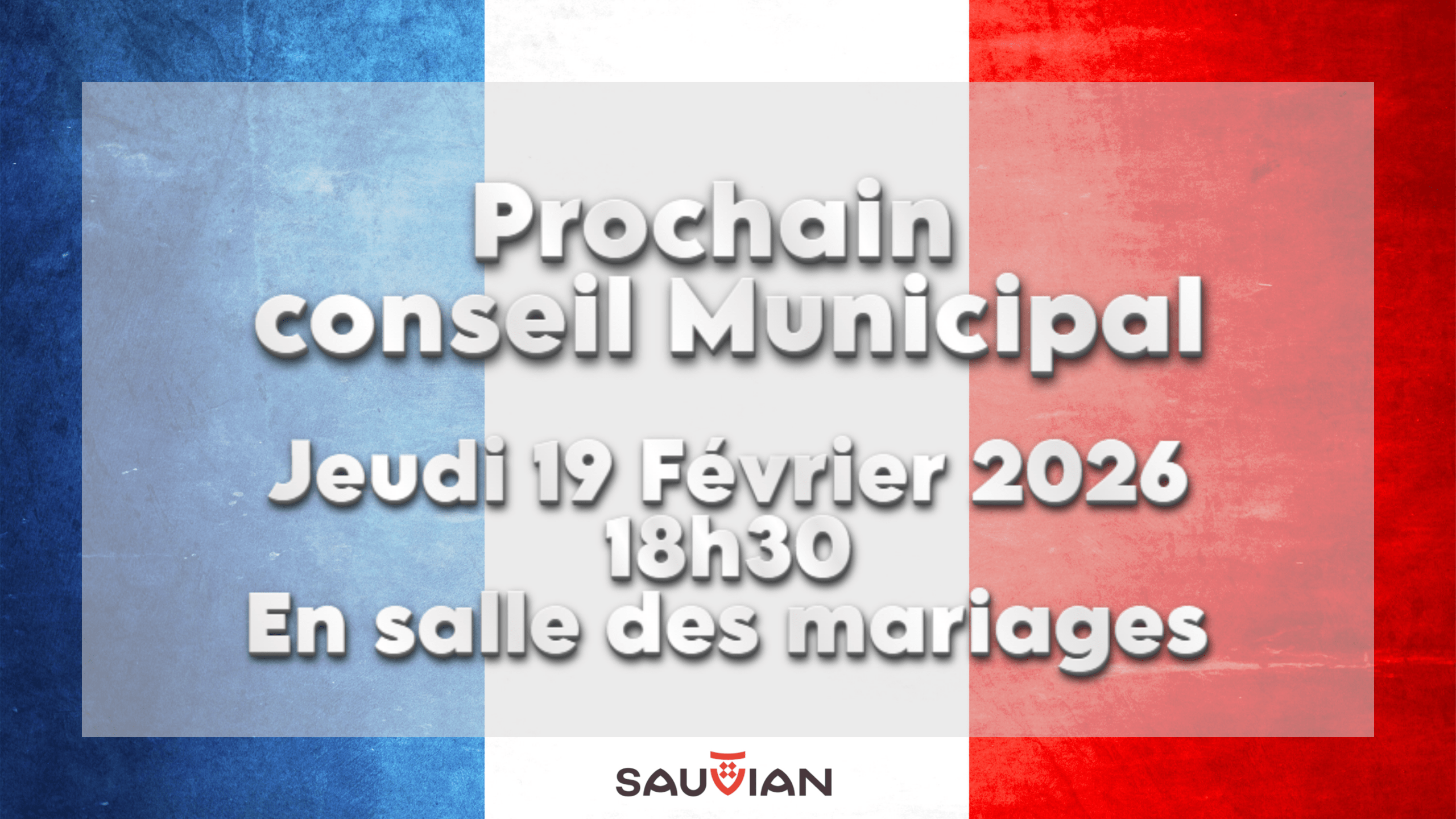 Le prochain conseil municipal se tiendra jeudi 19 février à 18h30 en salle des mariages.