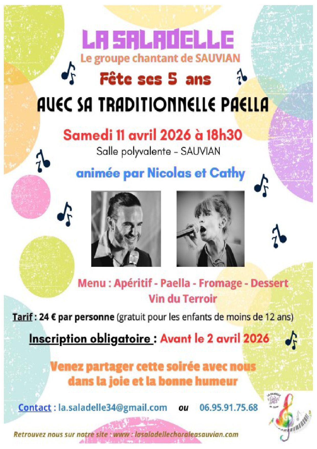 Le groupe chantant La Saladelle vous invite à célébrer cet anniversaire lors d’une soirée conviviale et festive à Sauvian !